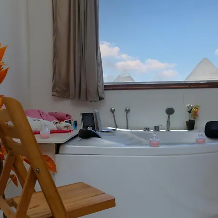 Situated within an 8-km distance of El Giza railway station, Luxury Giza Pyramids View & Jacuzzi Apartment Cairo awaits guests with access to a spa salon. The planned Grand Egyptian Museum is approximately a 10-minute drive from the apartment, while Viewpoint and Camel rides can be found approximately a 15-minute ride away.